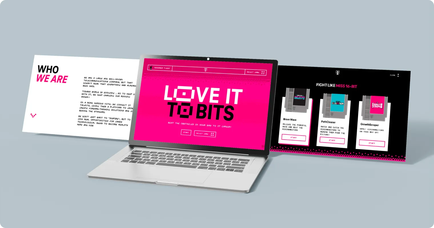 Cały koncept znalazł odzwierciedlenie w nowym landing page loveittobits.telekom.com. Tu user może zapoznać się z ideą przyświecającą Deutsche Telekom, a także zagrać w stworzone przez nas trzy dedykowane gry.